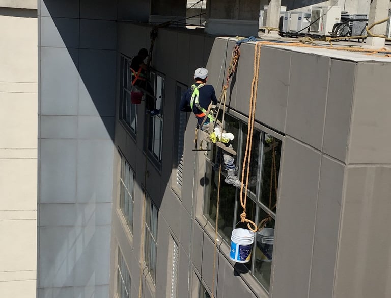 Pintura arquitectónica, colocación de mármol, colocación de marcos de elevadores.
